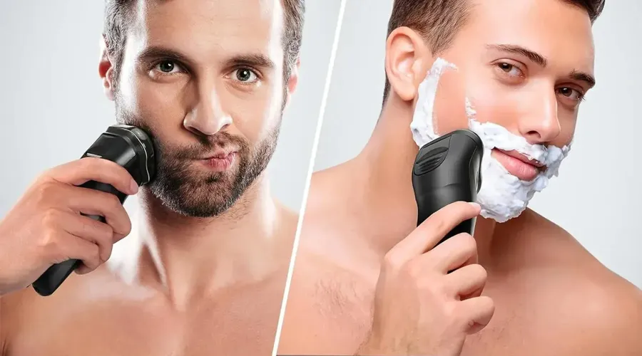 Se hai la pelle sensibile, valuta l’uso di un rasoio adatto sia a secco che sotto la doccia. Una rasatura con gel o schiuma può ridurre l’attrito e le irritazioni rispetto alla rasatura a secco.